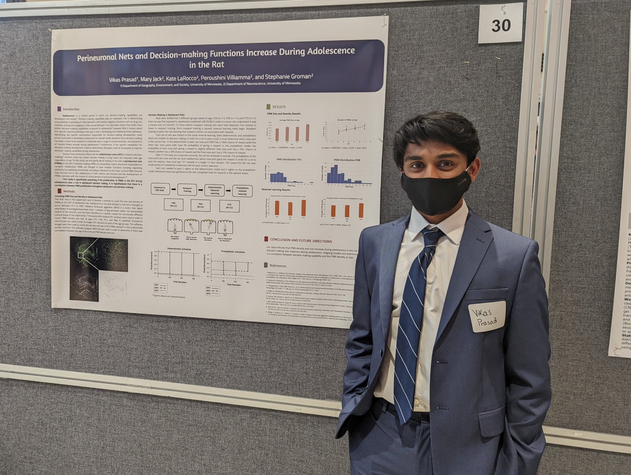 Vikas was awarded a research fellowship by the UMN Undergraduate Research Opportunity Program (UROP) to study the role of perineuronal nets in decision-making functions. Congratulations Vikas!!